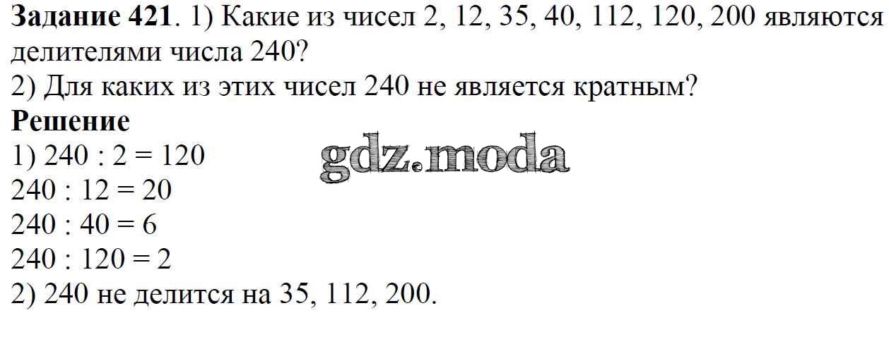 ОТВЕТ на задание № 421 Учебник по Математике 5 класс Дорофеев