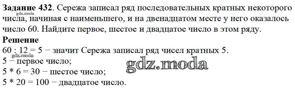 ОТВЕТ на задание № 432 Учебник по Математике 5 класс Дорофеев