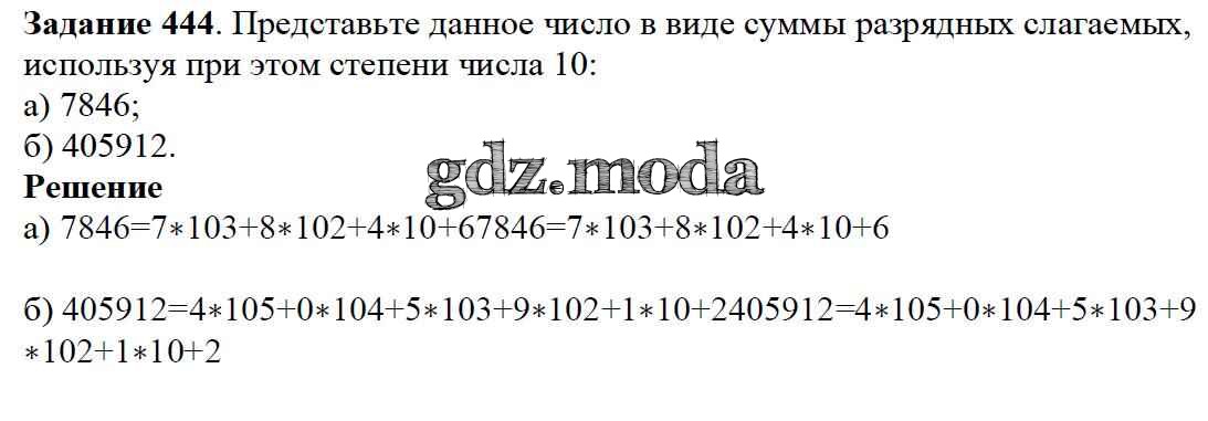 ОТВЕТ на задание № 444 Учебник по Математике 5 класс Дорофеев