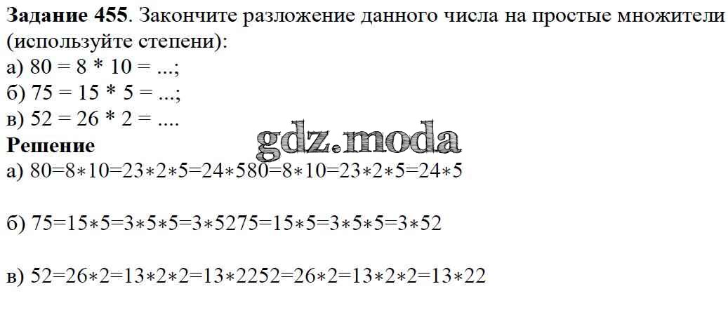 ОТВЕТ на задание № 455 Учебник по Математике 5 класс Дорофеев
