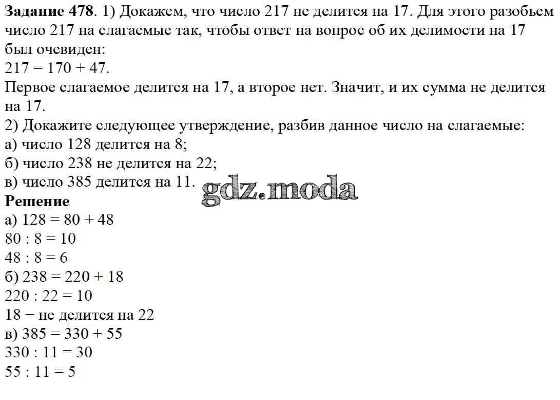 ОТВЕТ на задание № 478 Учебник по Математике 5 класс Дорофеев