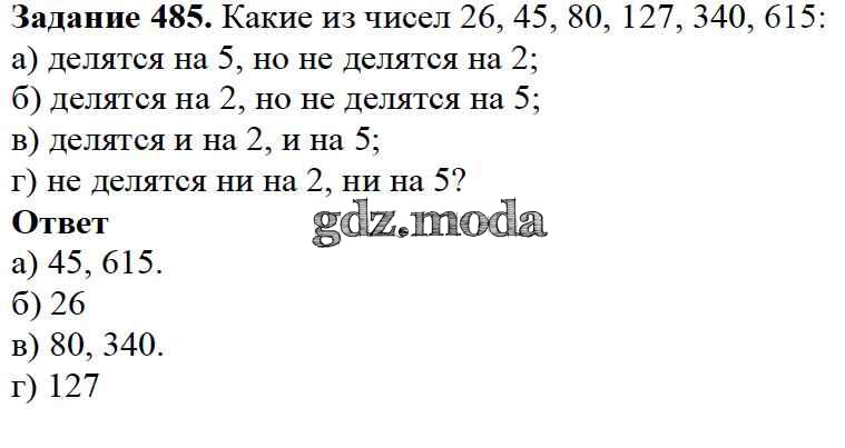 ОТВЕТ на задание № 485 Учебник по Математике 5 класс Дорофеев