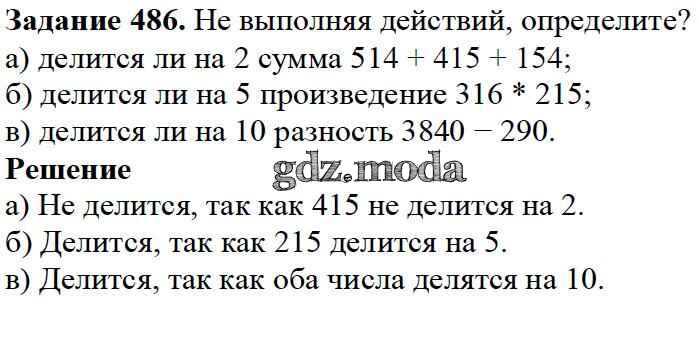 ОТВЕТ на задание № 486 Учебник по Математике 5 класс Дорофеев