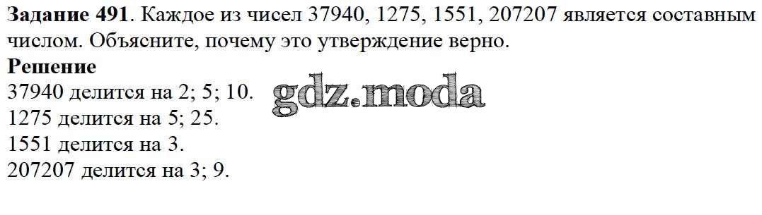 ОТВЕТ на задание № 491 Учебник по Математике 5 класс Дорофеев
