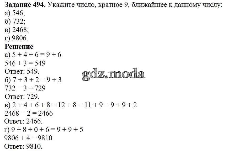 ОТВЕТ на задание № 494 Учебник по Математике 5 класс Дорофеев