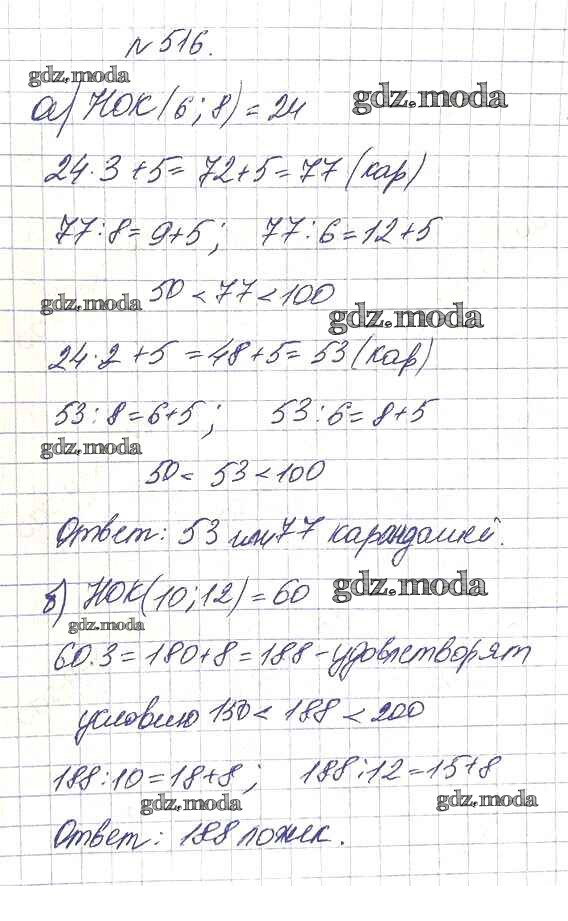 ОТВЕТ на задание № 516 Учебник по Математике 5 класс Дорофеев