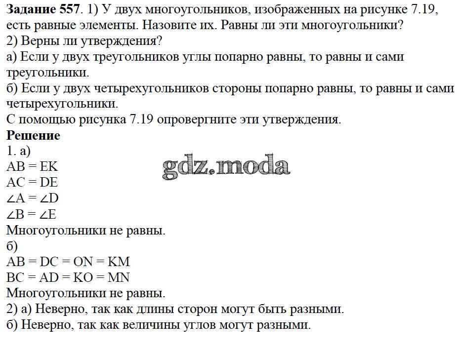 ОТВЕТ на задание № 557 Учебник по Математике 5 класс Дорофеев