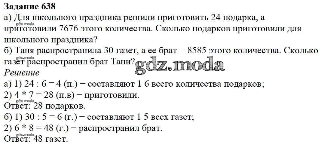 ОТВЕТ на задание № 638 Учебник по Математике 5 класс Дорофеев