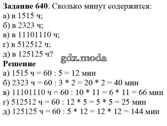 ОТВЕТ на задание № 640 Учебник по Математике 5 класс Дорофеев
