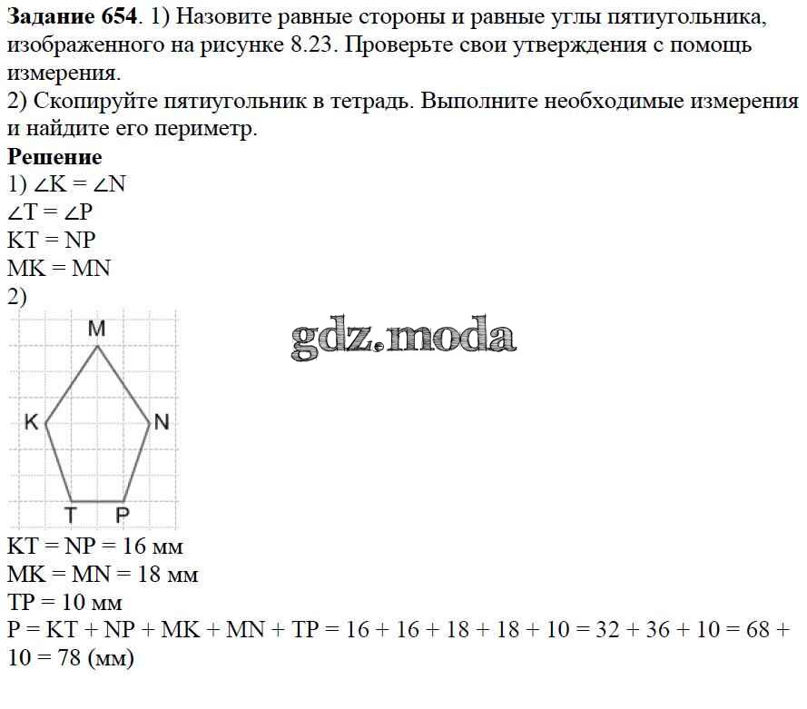 ОТВЕТ на задание № 654 Учебник по Математике 5 класс Дорофеев