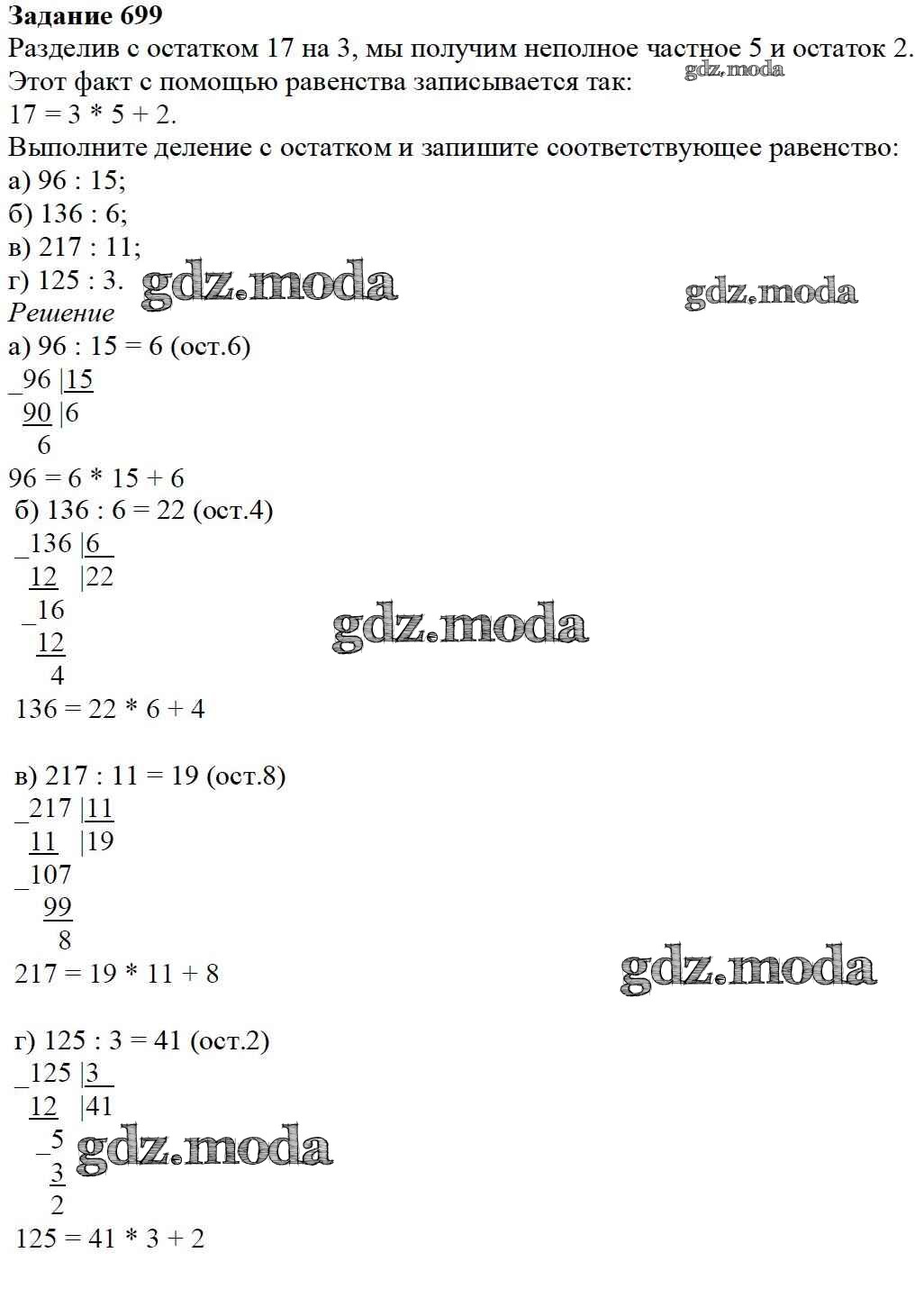ОТВЕТ на задание № 699 Учебник по Математике 5 класс Дорофеев