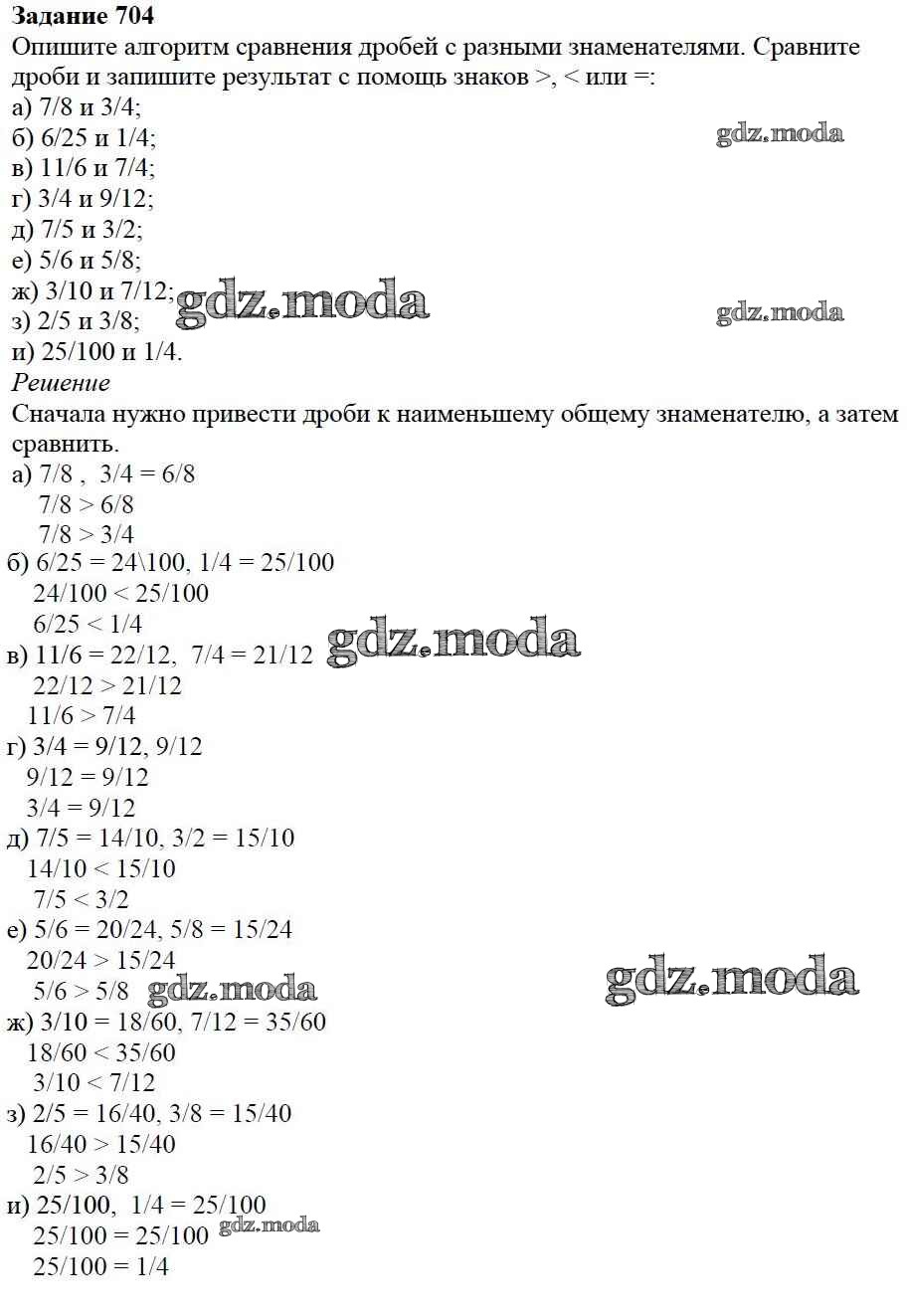 ОТВЕТ на задание № 704 Учебник по Математике 5 класс Дорофеев