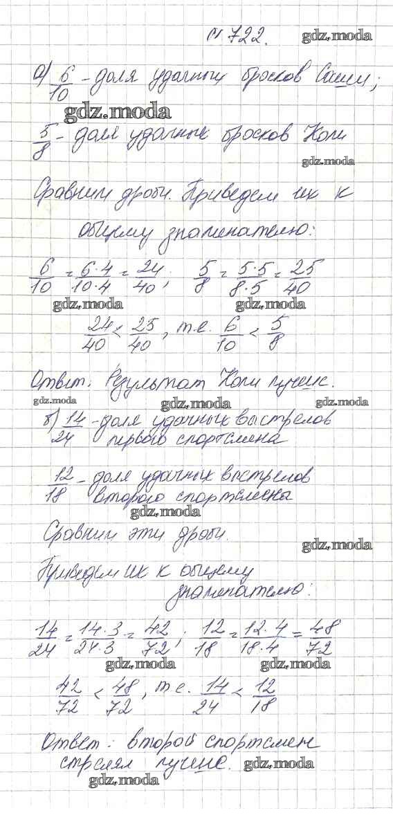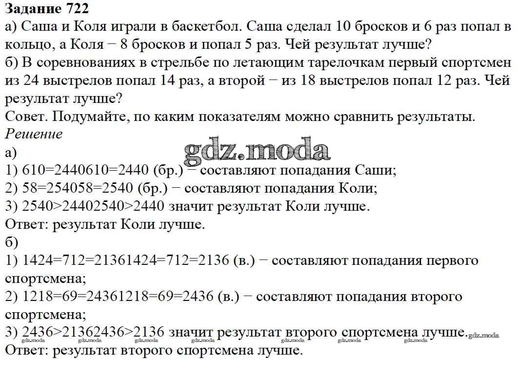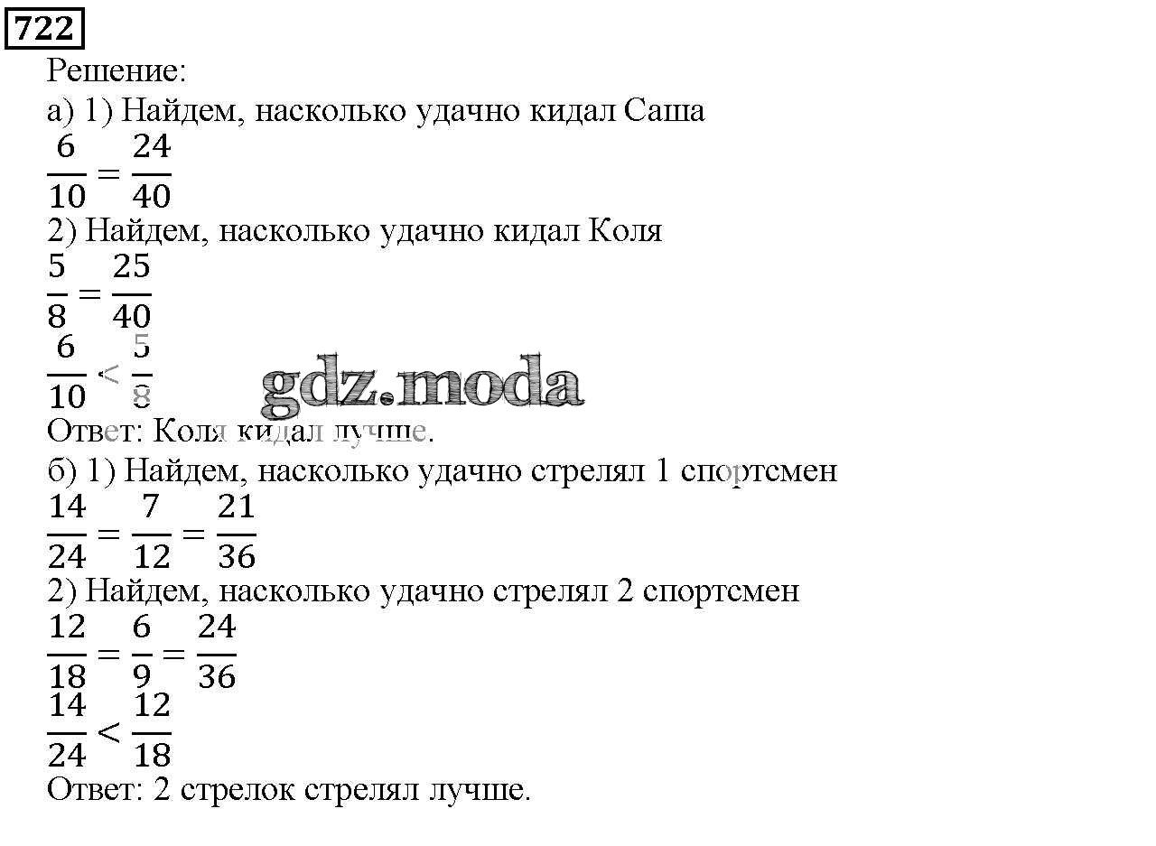ОТВЕТ на задание № 722 Учебник по Математике 5 класс Дорофеев