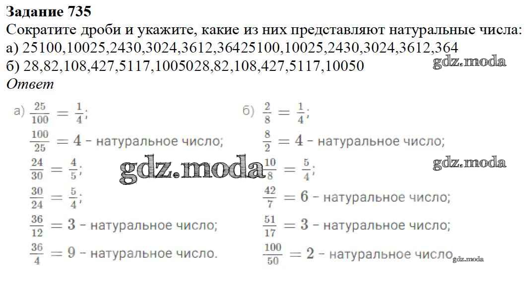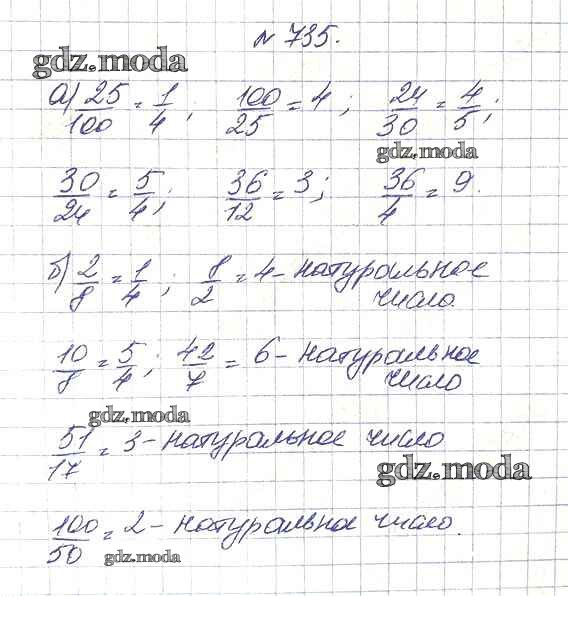 ОТВЕТ на задание № 735 Учебник по Математике 5 класс Дорофеев