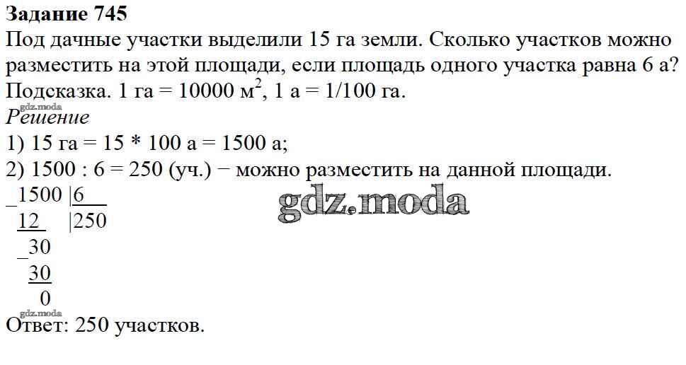 ОТВЕТ на задание № 745 Учебник по Математике 5 класс Дорофеев
