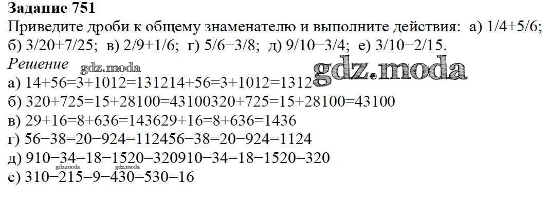 ОТВЕТ на задание № 751 Учебник по Математике 5 класс Дорофеев