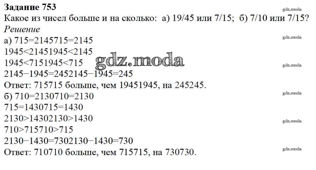 ОТВЕТ на задание № 753 Учебник по Математике 5 класс Дорофеев