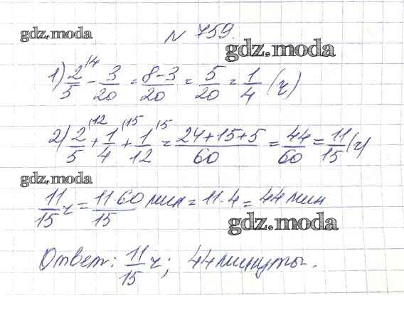 ОТВЕТ на задание № 759 Учебник по Математике 5 класс Дорофеев