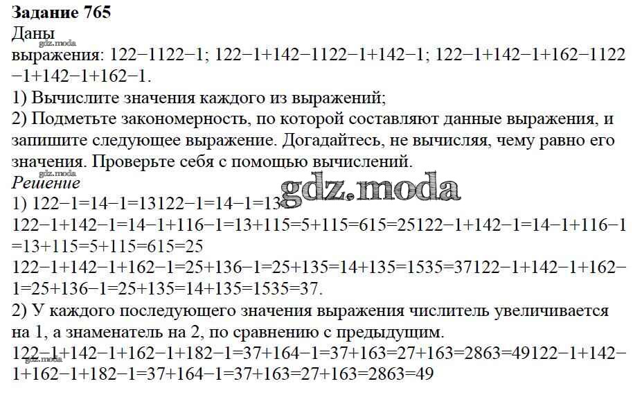 ОТВЕТ на задание № 765 Учебник по Математике 5 класс Дорофеев