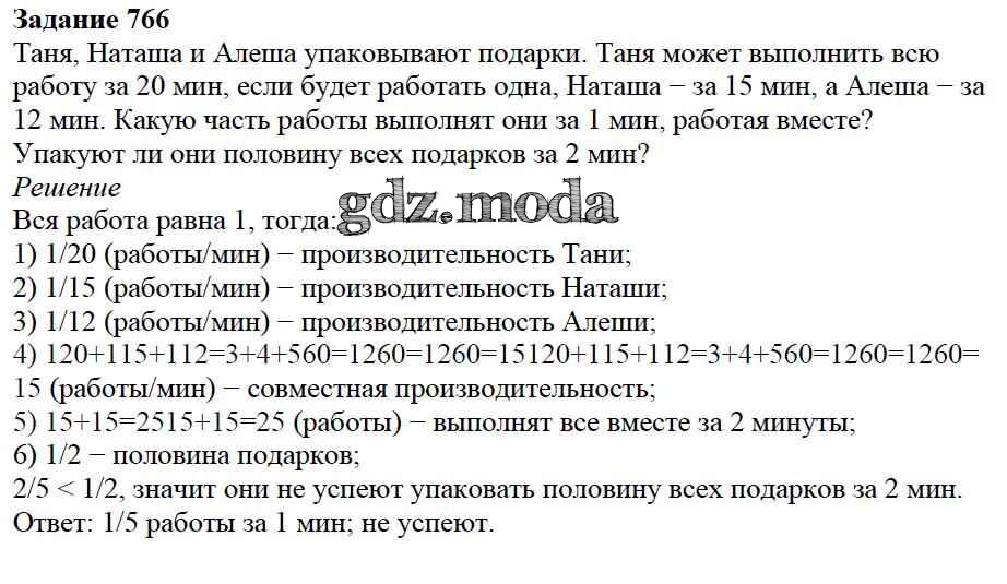 ОТВЕТ на задание № 766 Учебник по Математике 5 класс Дорофеев