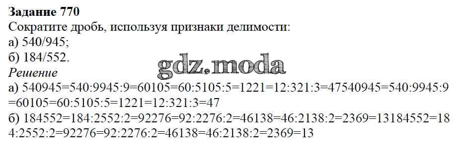 ОТВЕТ на задание № 770 Учебник по Математике 5 класс Дорофеев