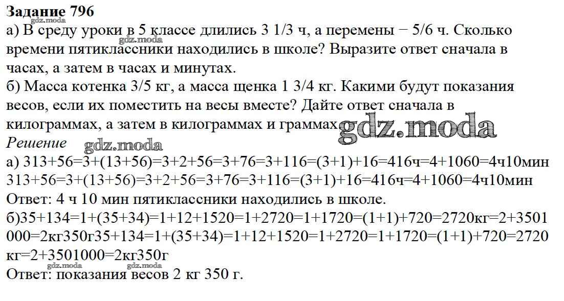 ОТВЕТ на задание № 796 Учебник по Математике 5 класс Дорофеев