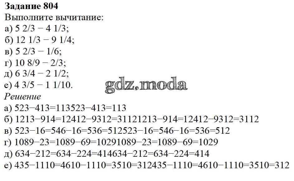 ОТВЕТ на задание № 804 Учебник по Математике 5 класс Дорофеев