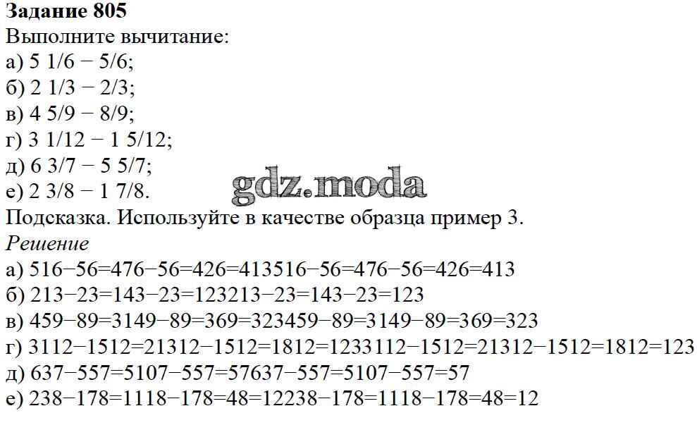 ОТВЕТ на задание № 805 Учебник по Математике 5 класс Дорофеев