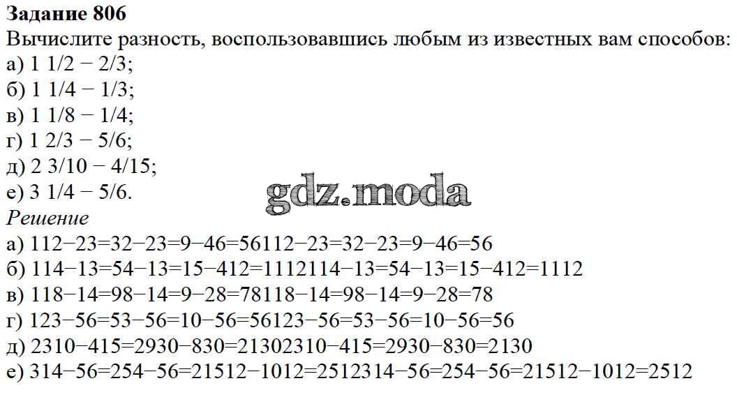 ОТВЕТ на задание № 806 Учебник по Математике 5 класс Дорофеев