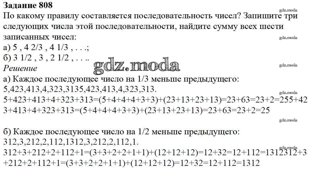 ОТВЕТ на задание № 808 Учебник по Математике 5 класс Дорофеев