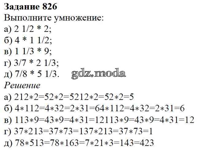 ОТВЕТ на задание № 826 Учебник по Математике 5 класс Дорофеев
