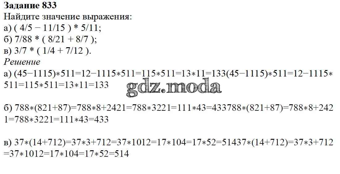 ОТВЕТ на задание № 833 Учебник по Математике 5 класс Дорофеев