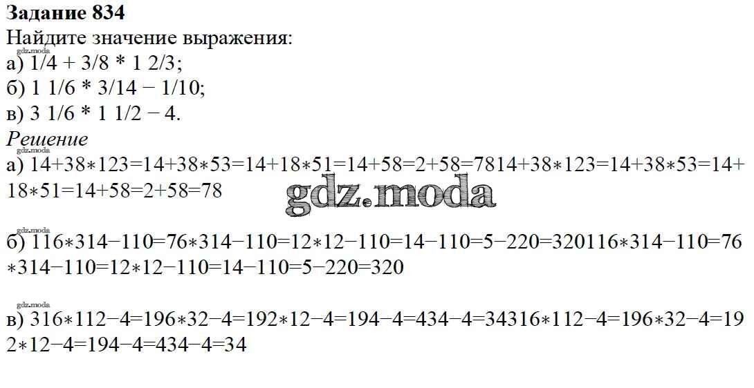 ОТВЕТ на задание № 834 Учебник по Математике 5 класс Дорофеев