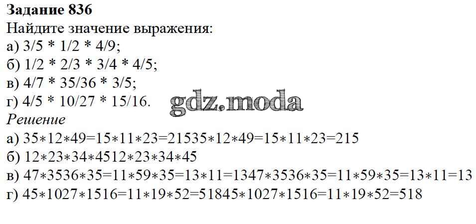 ОТВЕТ на задание № 836 Учебник по Математике 5 класс Дорофеев