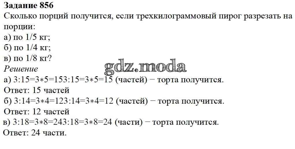 ОТВЕТ на задание № 856 Учебник по Математике 5 класс Дорофеев