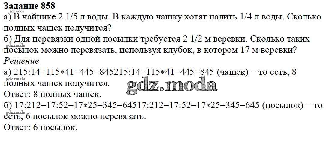ОТВЕТ на задание № 858 Учебник по Математике 5 класс Дорофеев