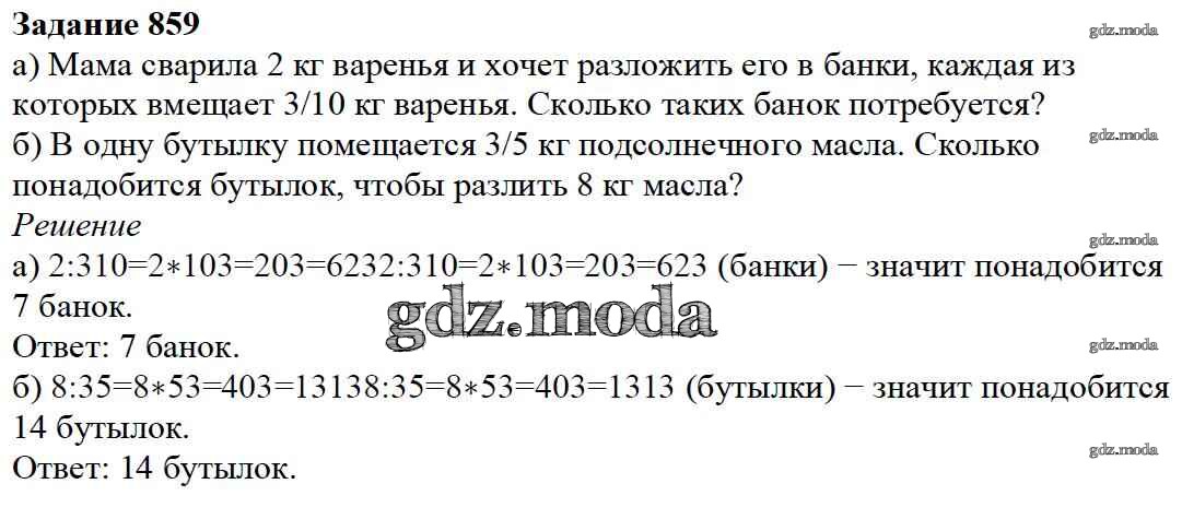 ОТВЕТ на задание № 859 Учебник по Математике 5 класс Дорофеев