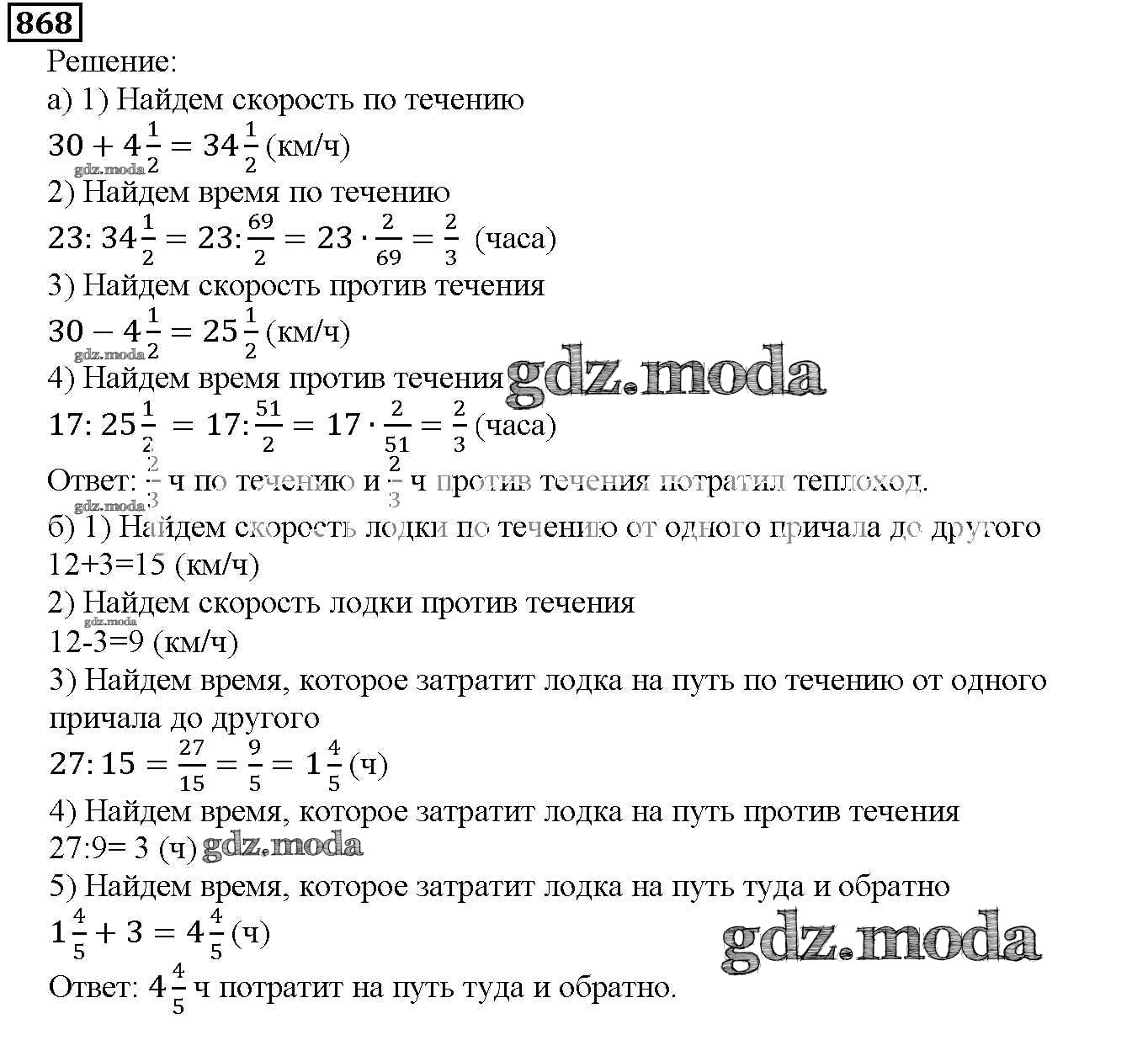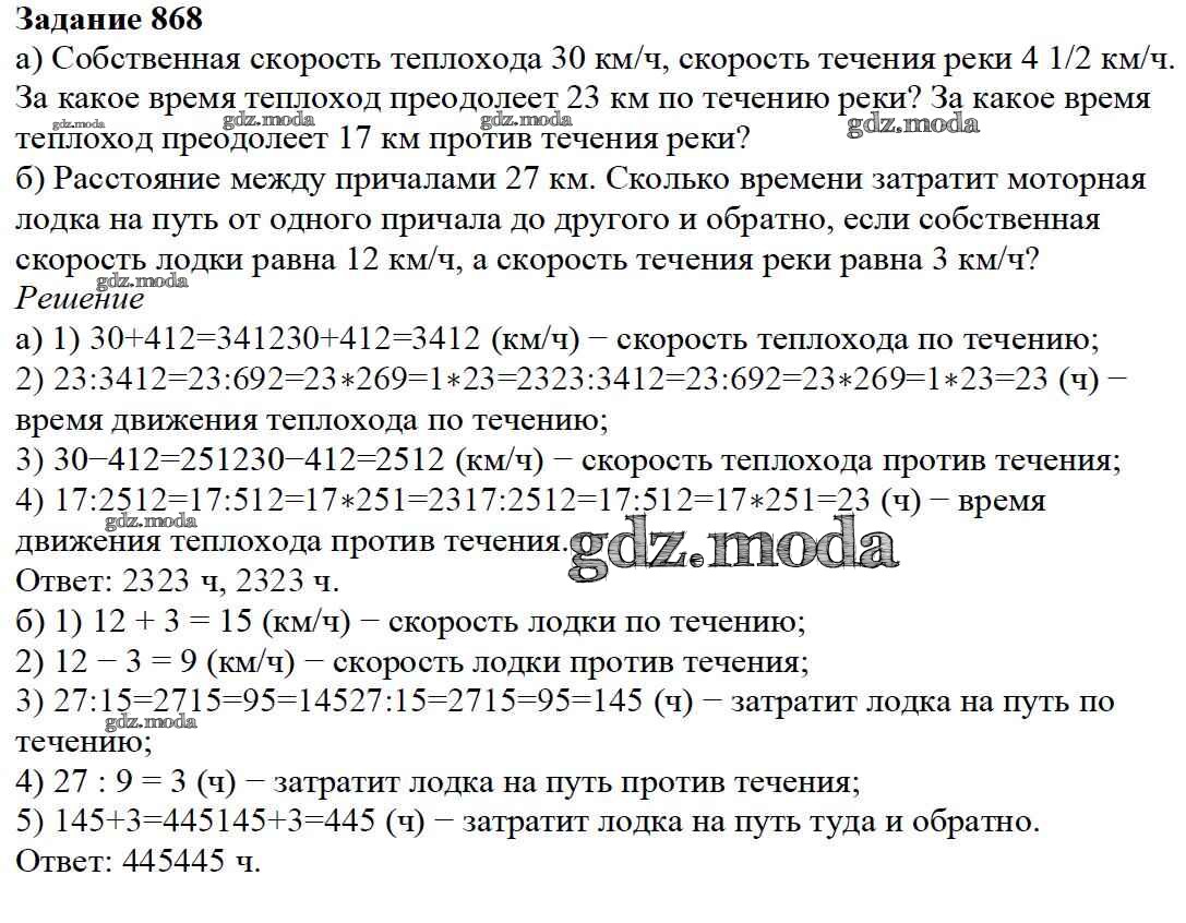 ОТВЕТ на задание № 868 Учебник по Математике 5 класс Дорофеев