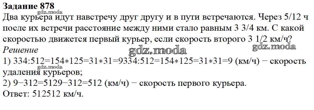 ОТВЕТ на задание № 878 Учебник по Математике 5 класс Дорофеев