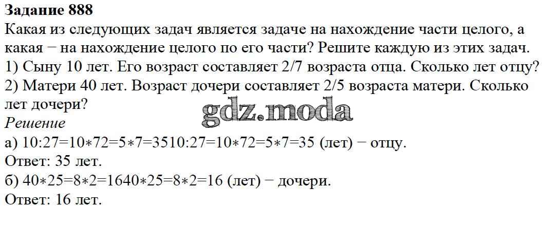 ОТВЕТ на задание № 888 Учебник по Математике 5 класс Дорофеев