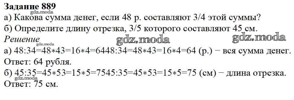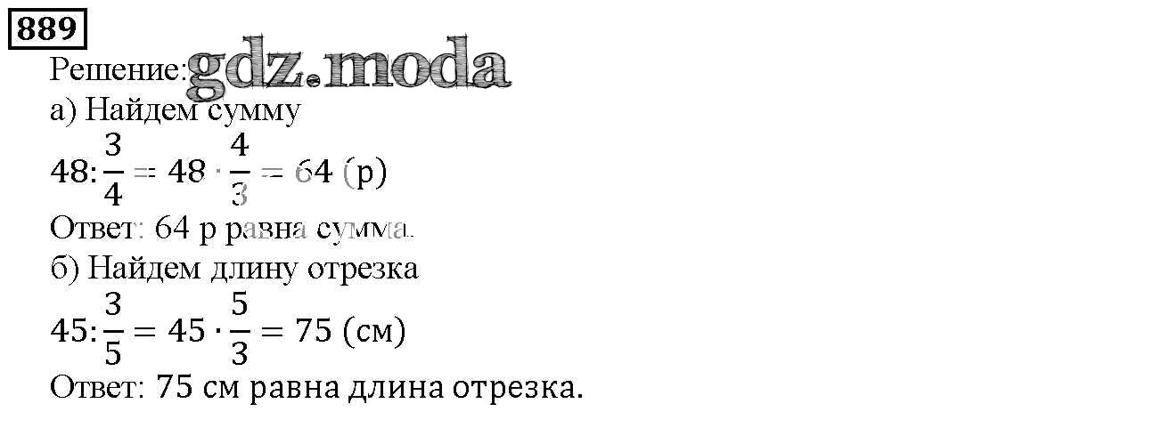 ОТВЕТ на задание № 889 Учебник по Математике 5 класс Дорофеев