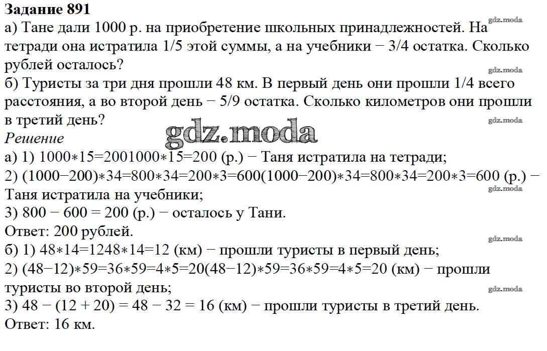 ОТВЕТ на задание № 891 Учебник по Математике 5 класс Дорофеев