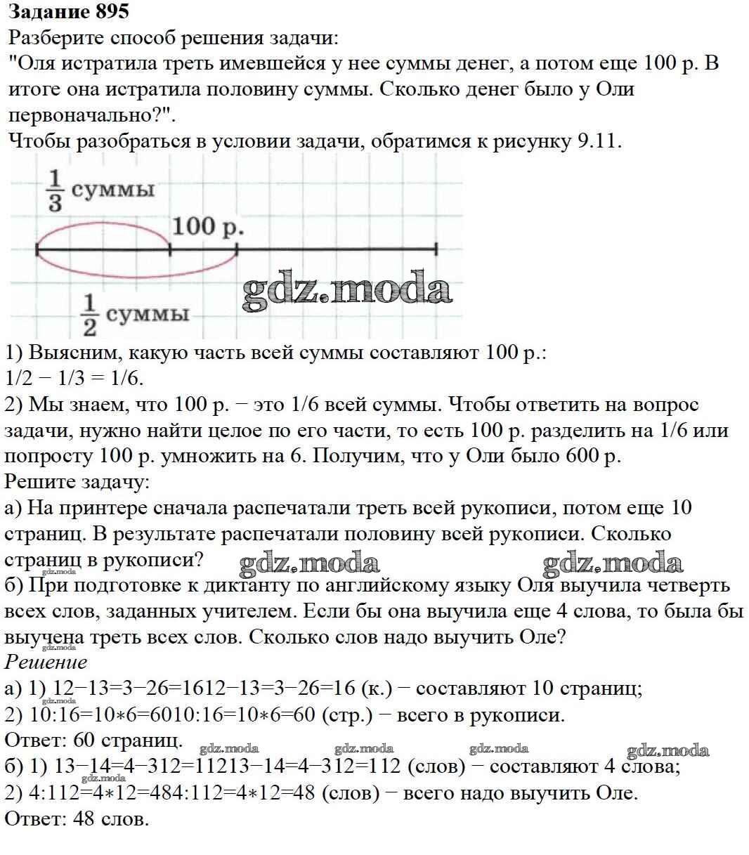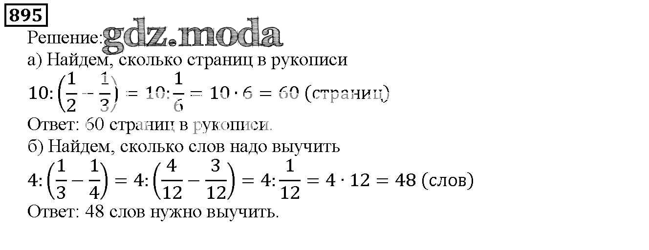 ОТВЕТ на задание № 895 Учебник по Математике 5 класс Дорофеев