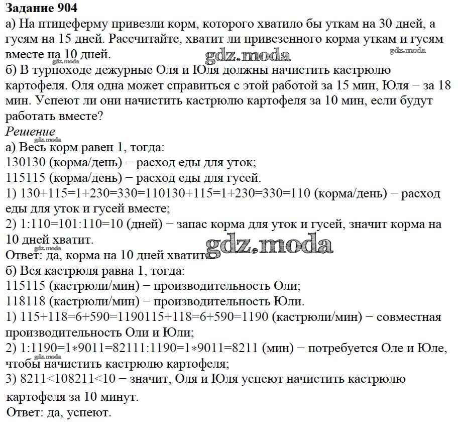 ОТВЕТ на задание № 904 Учебник по Математике 5 класс Дорофеев