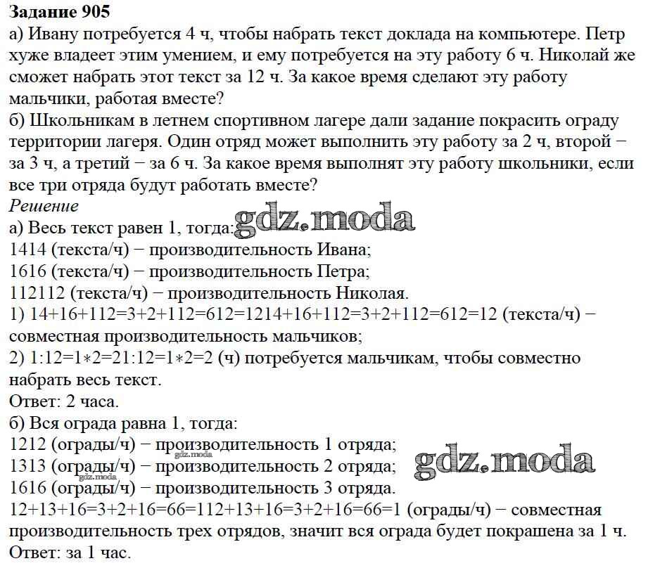 ОТВЕТ на задание № 905 Учебник по Математике 5 класс Дорофеев