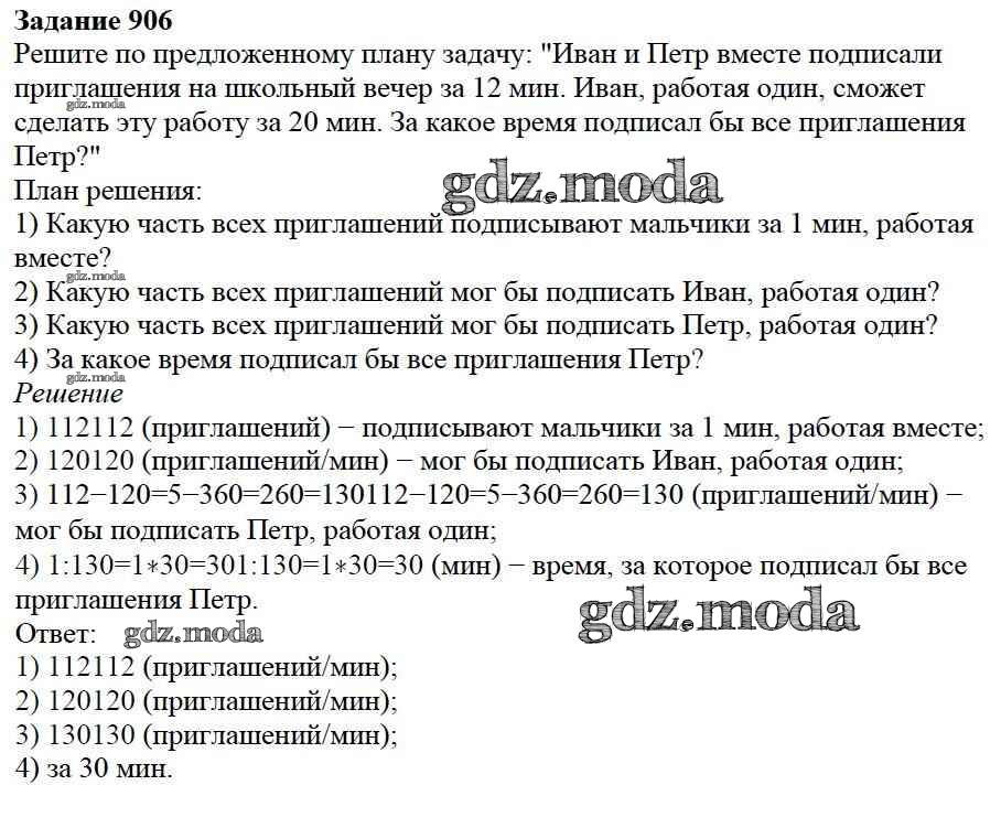 ОТВЕТ на задание № 906 Учебник по Математике 5 класс Дорофеев