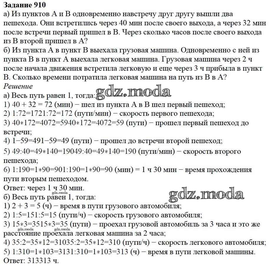 ОТВЕТ на задание № 910 Учебник по Математике 5 класс Дорофеев