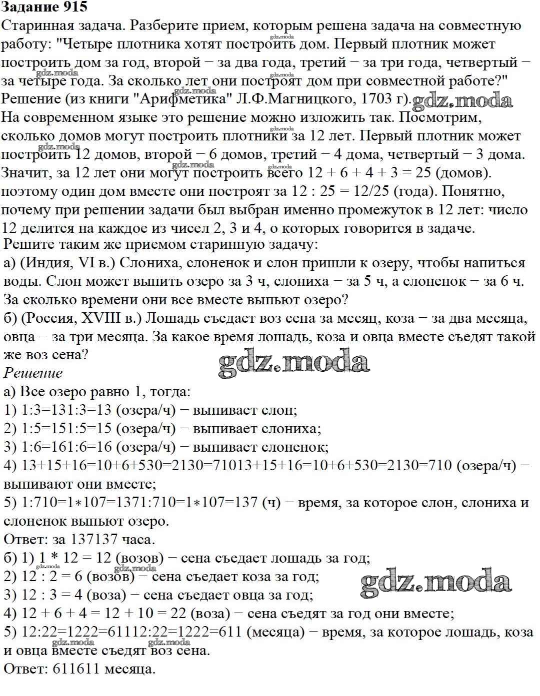 ОТВЕТ на задание № 915 Учебник по Математике 5 класс Дорофеев