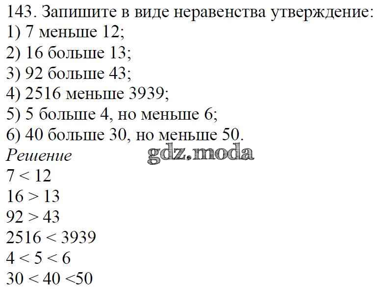 ОТВЕТ на задание № 143 Учебник по Математике 5 класс Мерзляк Алгоритм успеха