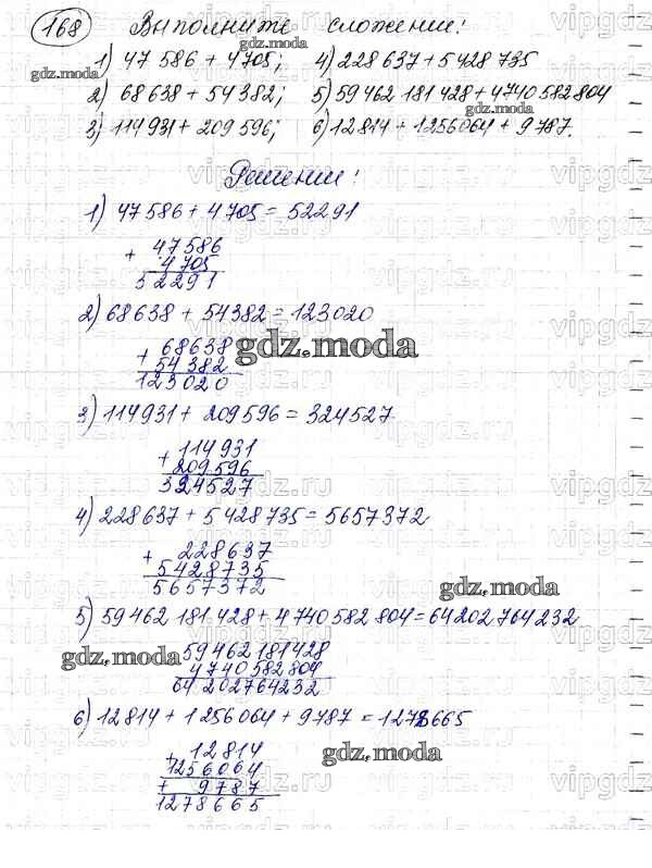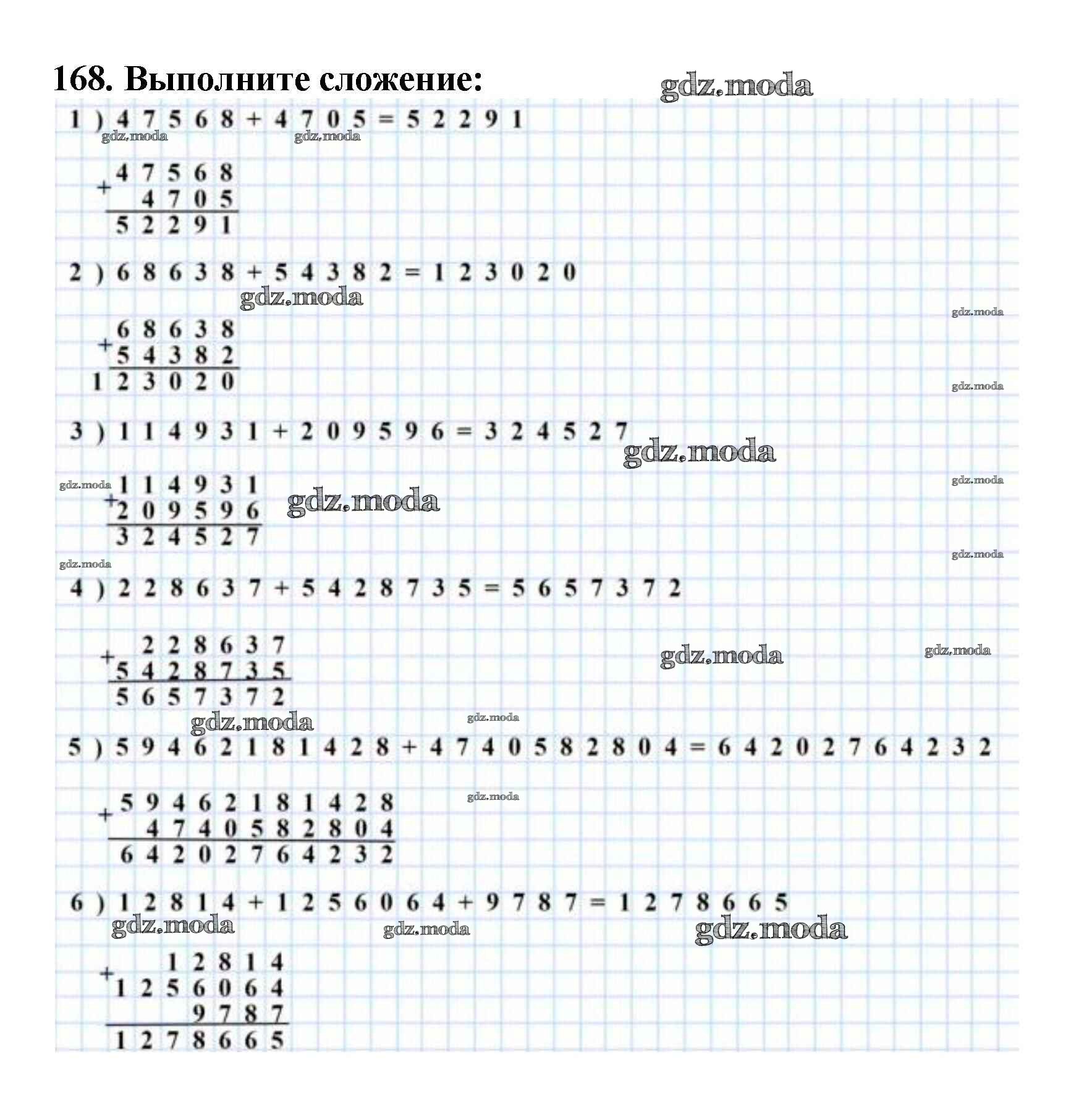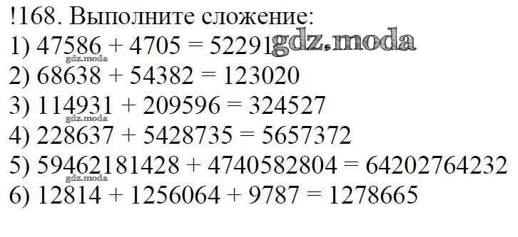 ОТВЕТ на задание № 168 Учебник по Математике 5 класс Мерзляк Алгоритм успеха